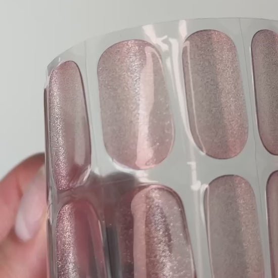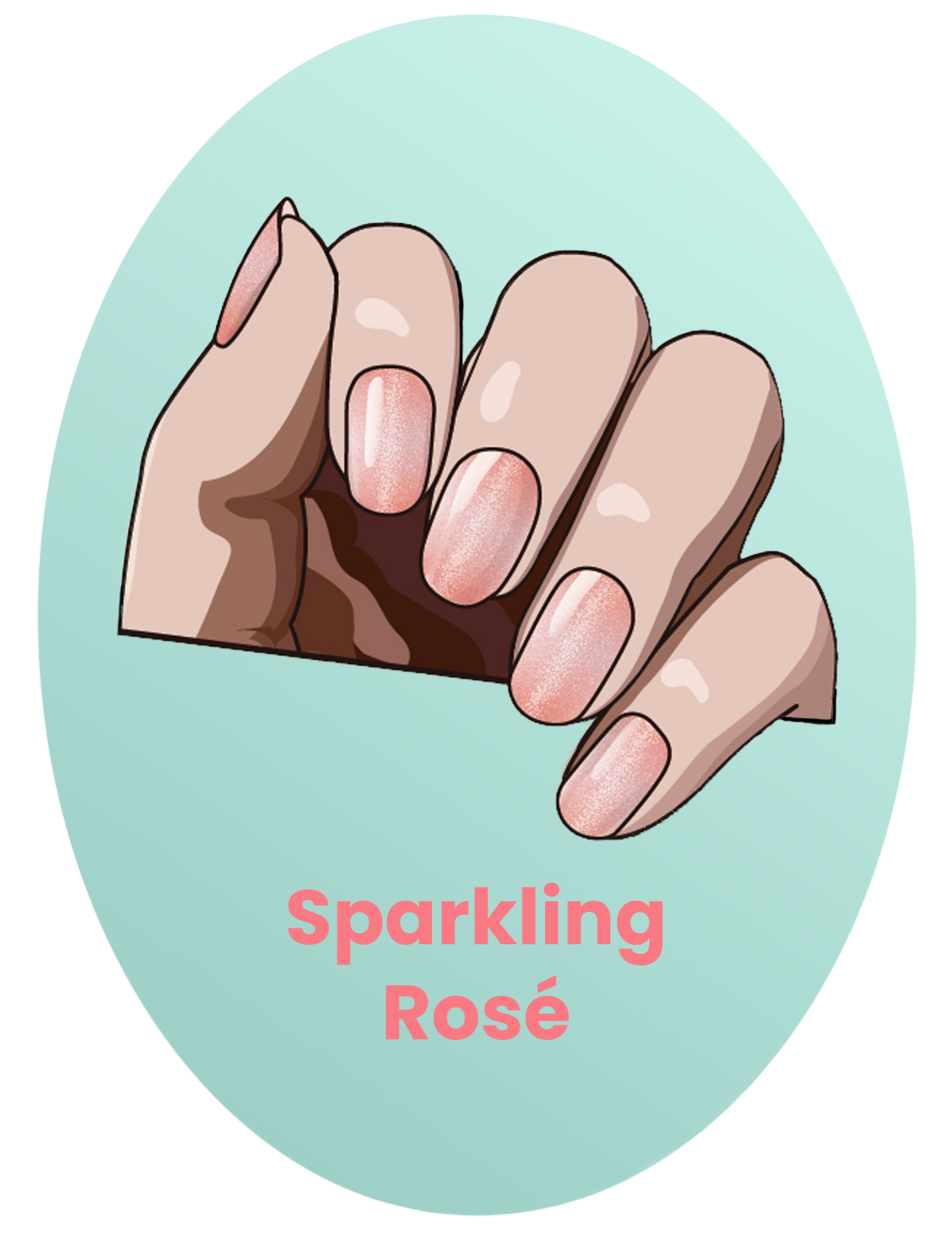 Sparkling Rosé er bleikur með glitter áferð. Hann er með aðeins dekkri bleikum neðst við naglaböndin og verður svo aðeins ljósari út í endana. Hann er með svokallaðri "cat-eye effect".
