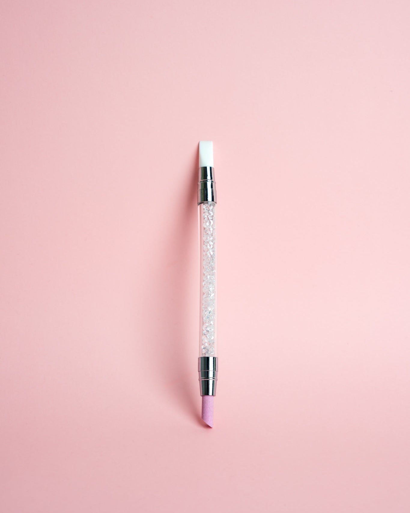 - Notaðu fingurgómana og tréprikið sem fylgir með til að festa brúnirnar vel niður. Það er mikilvægt að festa gelið mjög vel niður til að fá sem bestu endingu. Þrýstu tréprikinu varlega niður á endana á gelinu.